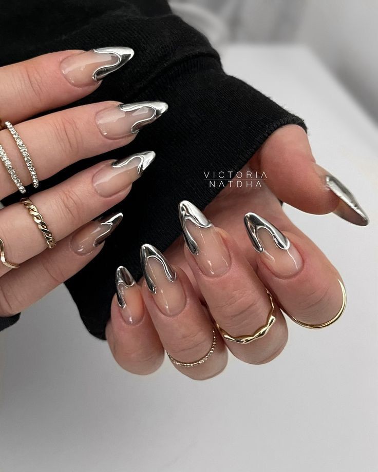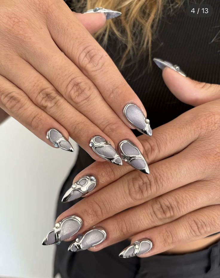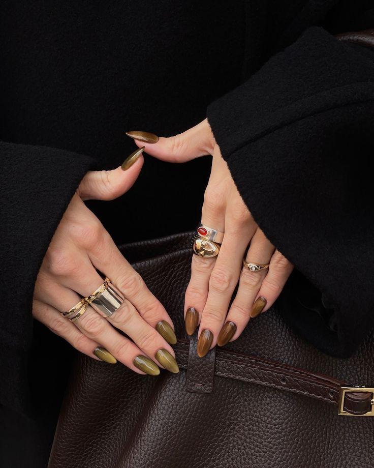 Mùa đông năm nay, dáng móng hạnh nhân trở thành “định dạng chuẩn” cho những ai mong muốn giữ vẻ thanh lịch nhưng vẫn có chút điểm nhấn. Các hiệu ứng đang thịnh hành như cat-eye nhiều tầng, chrome ánh ngọc trai hay phủ bóng metallic đều trở nên tinh xảo hơn khi đặt trên nền móng hạnh nhân. Chỉ cần điều chỉnh độ dài, dáng móng này có thể chuyển từ nhẹ nhàng sang sắc sảo, từ đơn giản sang ấn tượng mà vẫn giữ được sự nhã nhặn.