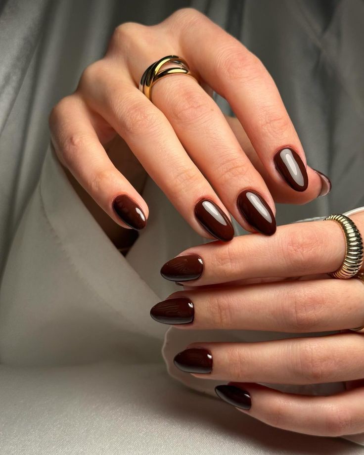 Trong ba dáng móng được yêu thích nhất mùa đông 2025, dáng hạnh nhân (almond) là kiểu cổ điển nhất nhưng cũng linh hoạt nhất. Phần đầu móng tròn nhẹ và thân móng thon vừa phải giúp almond phù hợp với nhiều dáng tay. là dáng móng giúp bàn tay trông mềm hơn mà không bị “yếu”, thon hơn mà không bị sắc như dáng móng nhọn.