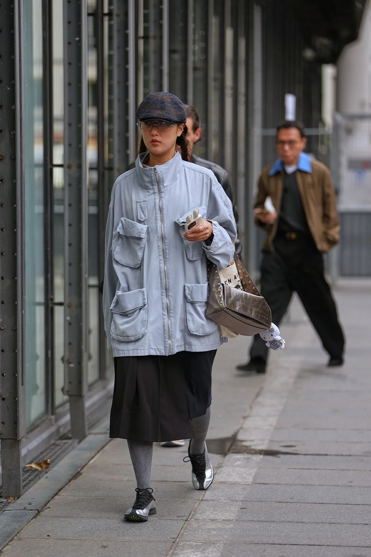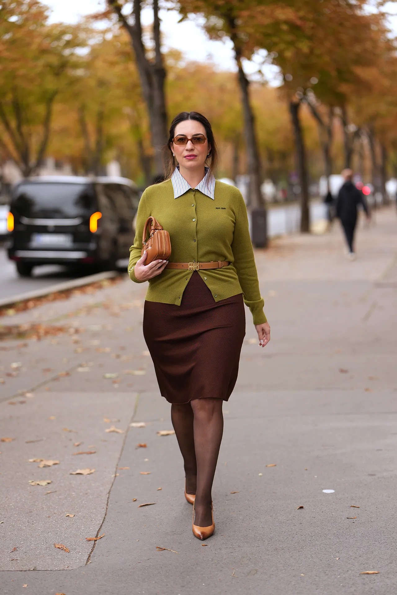 Phối tất cùng giày tưởng như một chi tiết nhỏ nhưng lại tạo ra sự thay đổi lớn về phong thái. Một đôi tất mỏng đi cùng slingback mang lại sự nữ tính cổ điển, mang tinh thần nerdy chic mang cảm hứng Miu Miu; tất dày đi với mule mang đến vẻ ấm cúng; tất cổ cao đi cùng loafer khiến outfit nhẹ nhàng nhưng vẫn cá tính theo kiểu “nghịch ngầm”.