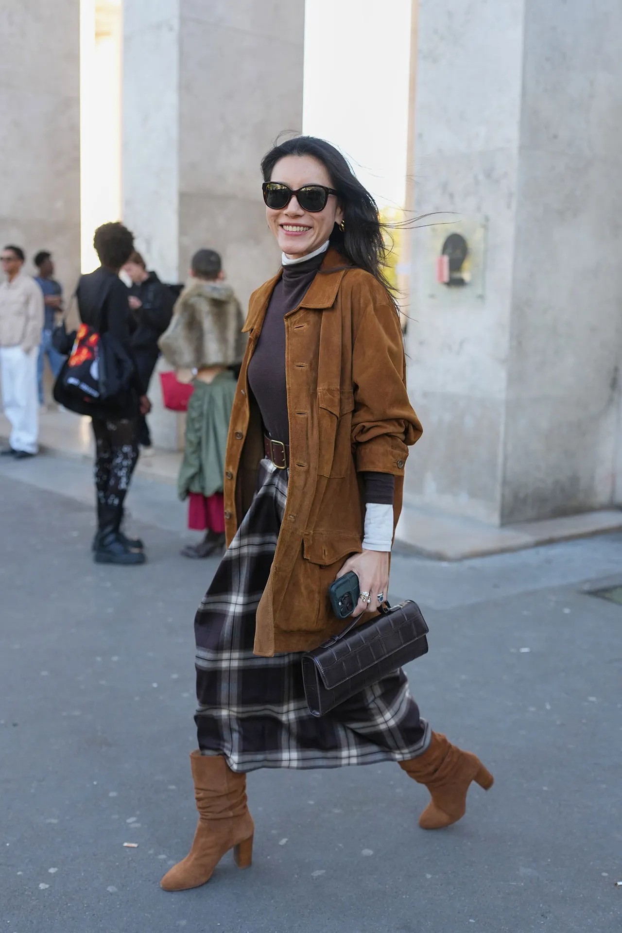 Boho boots mang theo hơi thở của tự do, phóng khoáng của thập niên 2000s, nhưng không còn quá lãng mạn như giai đoạn boho chic trước đây. Dáng boots năm nay được tinh chỉnh: cổ thấp gọn, thân da lộn mềm, màu nâu và be trầm ấm. Chúng không áp đặt phong cách, mà nhẹ nhàng hòa vào trang phục, tạo nên sự mềm mại cho toàn bộ silhouette.