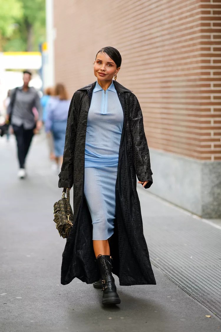 Cổ boots đứng, đường viền chắc chắn và phần đế có độ cao vừa phải mang lại cảm giác an tâm khi di chuyển, đặc biệt trong những ngày ẩm ướt. Khi kết hợp với váy midi mềm rũ, combat boots tạo nên đối lập rất đắt: sự cứng cáp của da và nét bay của chất liệu vải. Đi cùng quần da, chúng nhắc nhớ tinh thần nổi loạn vừa đủ; còn khi đi cùng jeans ôm và áo len oversize, combat boots trở thành điểm neo giúp tổng thể trang phục có chiều sâu và tính ổn định.