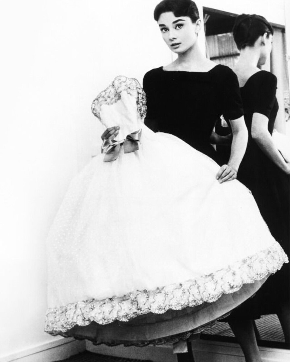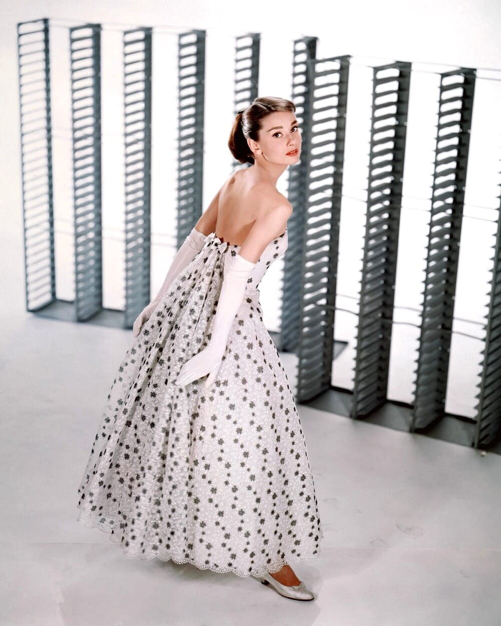 Sabrina (1954) trở thành bộ phim khởi đầu cho một trong những mối cộng sinh đẹp nhất giữa thời trang và điện ảnh. Bộ váy trắng cúp ngực, eo thắt, thêu tay tỉ mỉ trên nền satin đã giúp Audrey hóa thân thành cô gái vừa trở về từ Paris, mang theo tất cả sự tinh tế và kiêu hãnh của kinh đô thời trang.