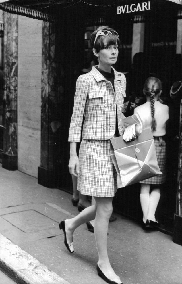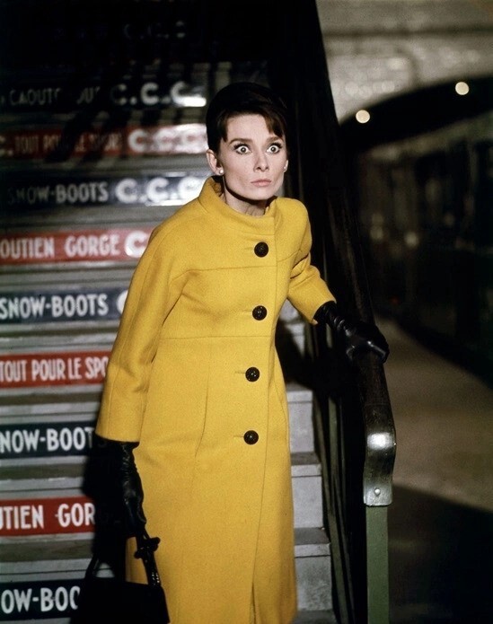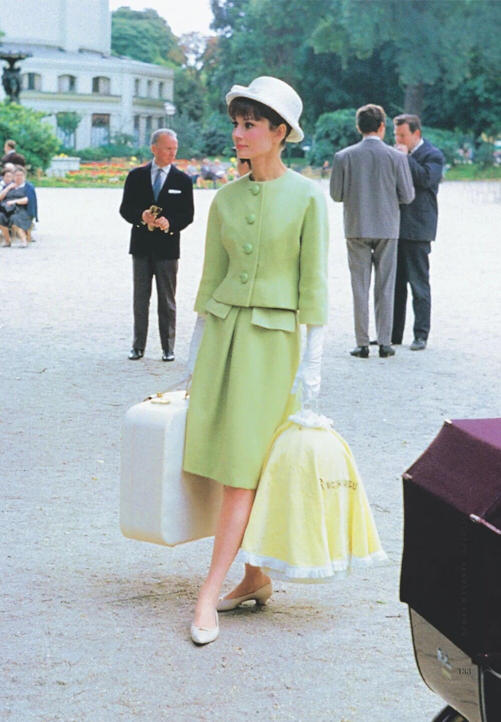 Đến Charade (1963), nàng bước xuống phố Paris với áo khoác ngắn và khăn quàng cổ, tay cầm găng da đen. Không cần dạ hội, không cần ngọc trai, vẫn là Audrey, vẫn Givenchy, nhưng giản dị và hiện đại hơn bao giờ hết.