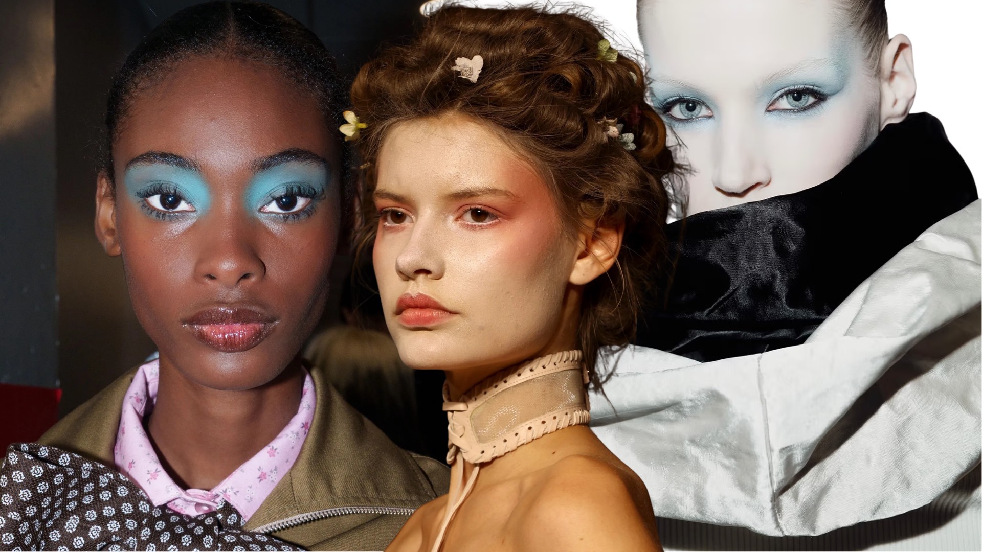 Đón đầu xu hướng này, chuyên gia trang điểm Pat McGrath cũng tạo nên dấu ấn mạnh mẽ với phấn mắt xanh lam, một biểu tượng khác của thập niên 80. Tại show Anna Sui, bà kết hợp phấn mắt xanh ánh nhũ trên bầu mắt cùng mascara xanh đồng điệu. Còn tại Schiaparelli, McGrath sử dụng bảng Gilded Nirvana Mega Palette để tạo mắt khói màu xanh da trời, gợi nhớ tinh thần pop-culture sôi động trong các video âm nhạc Culture Club.