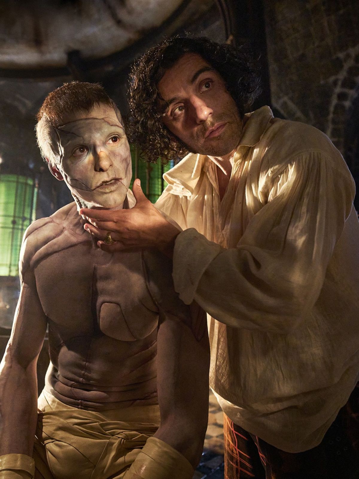 Những tia sáng mỏng manh len lỏi qua những hành lang sâu hun hút, vừa soi rọi phần người yếu ớt của nhân vật Victor Frankenstein (Oscar Isaac thủ vai), vừa che giấu nỗi cô độc mà ngay cả anh cũng không gọi tên được.