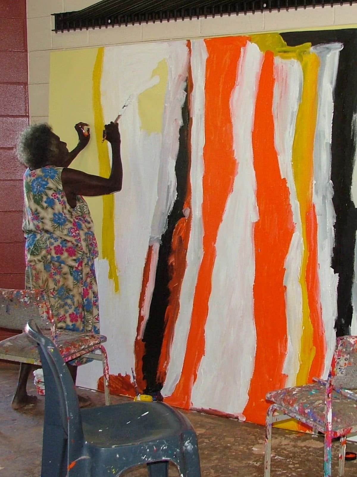 Sinh năm 1924 trên đảo Bentinck ở Queensland, Gabori thuộc cộng đồng người bản địa Kaiadilt. Bà chỉ bắt đầu cầm cọ ở những năm cuối cuộc đời. Nhưng trong thời gian ngắn ngủi ấy, Gabori đã tạo ra những bức sơn dầu táo bạo, tràn đầy năng lượng và cảm xúc, khắc họa phong cảnh quê hương qua ký ức và tâm thức, nơi màu sắc trở thành nhịp đập của ký ức tập thể.