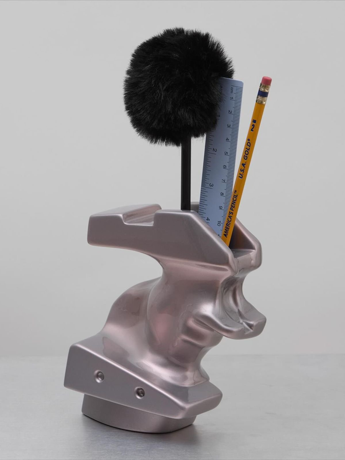 Tại Frieze London 2025, Wielebinski mang đến loạt điêu khắc mới thoạt nhìn như những chiếc bình hoa hoặc ống đựng bút. Nhưng ẩn sau vẻ ngoài tinh giản ấy lại được tạo dựng từ bản đúc nhựa của báng súng làm từ silicon carbide chống đạn và gạch alumina - những vật liệu gắn liền với chiến tranh và công nghiệp quân sự.