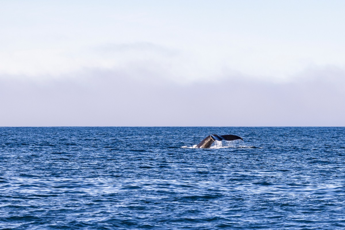 Mặt biển yên tĩnh bỗng vỡ tung bởi một tiếng “PHÙ” trầm vang. Một cột hơi nước bắn thẳng lên trời. Từ dưới làn nước sâu, bóng dáng một con cá voi lưng gù dần hiện ra. Tất cả chúng tôi lập tức tắt máy, nín thở. Sinh vật khổng lồ ấy bơi lượn quanh thuyền. Chiếc chiếc vây trắng muốt vẫy nhẹ như một lời chào. Khi nó lặn xuống, chiếc đuôi cong vút lên khỏi mặt nước một cách duyên dáng như thể đang gửi lời chào tạm biệt cuối cùng.