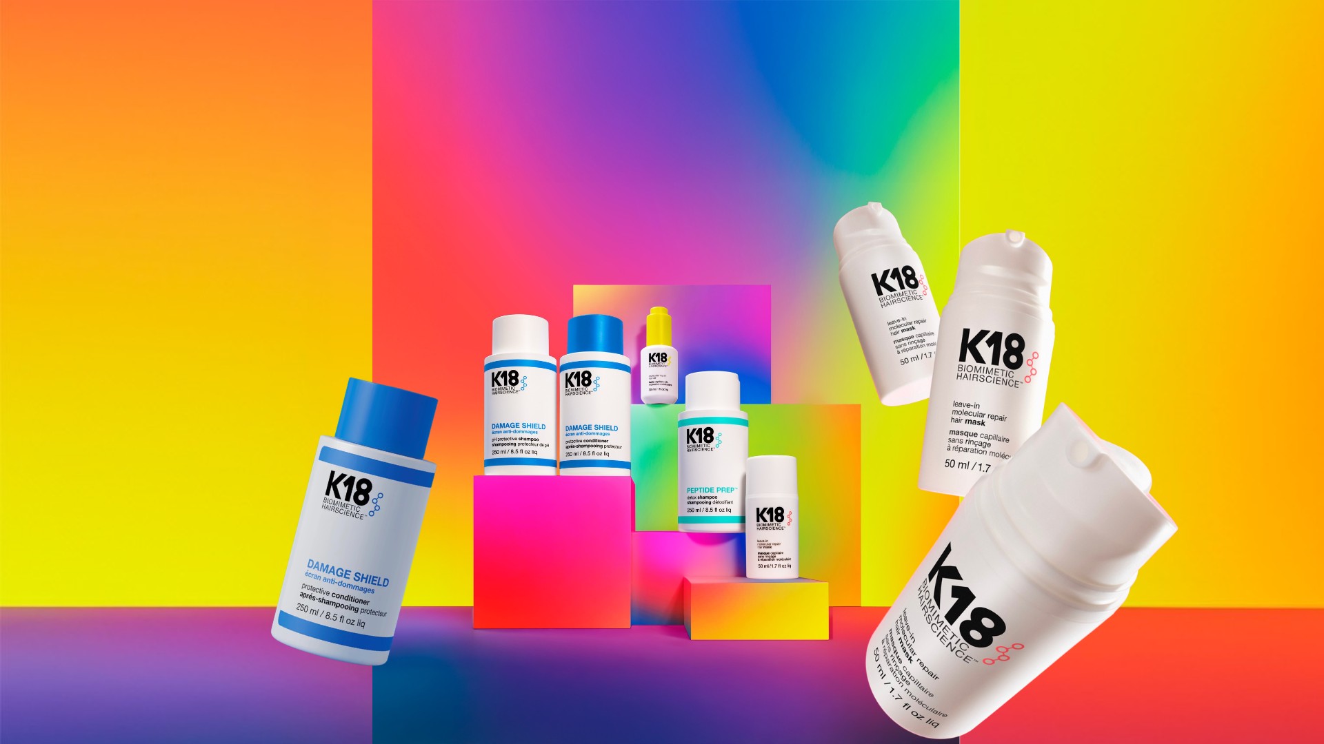 Danh mục sản phẩm của K18 được xây dựng xoay quanh công nghệ K18PeptideTM, mang đến giải pháp phục hồi và bảo vệ tóc toàn diện:
