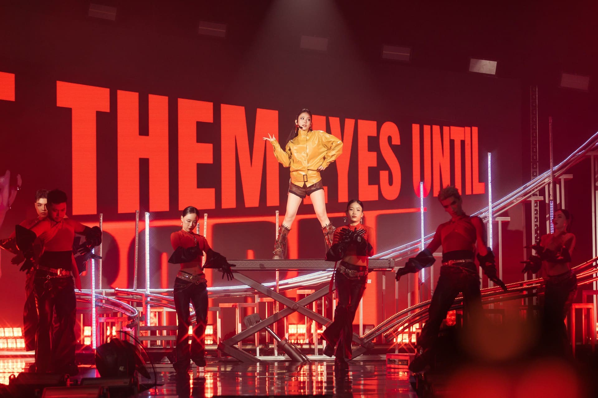 Trên sân khấu được thiết kế hiện đại với sàn nâng và treadmill, cô xuất hiện trong ánh sáng mạnh mẽ, thể hiện giọng hát ổn định cùng khả năng làm chủ không gian sân khấu. Khán giả được thấy một Mai Phương khác – quyết liệt, tự tin, và tràn đầy sức sống.