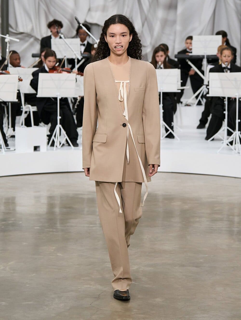 Tại BST của thương hiệu Missoni, áo sơ mi được cắt ngắn, chỉ để lộ khi mặc áo nỉ cổ tròn màu xám. Nhà mốt MM6 Maison Margiela lại có cách tái hiện những món đồ mà người Mỹ biết đến và yêu thích theo cách khác. Họ thổi vào chúng nét phóng khoáng và một chút quyến rũ đặc trưng của Ý thông qua chiếc váy bút chì cổ điển và áo len cài nút phía trước được phối cùng nhau, kính râm quấn quanh mắt trông giống như một vòng cung bằng thép không gỉ và những dải vải sọc được may trên váy theo họa tiết chữ "Y".
