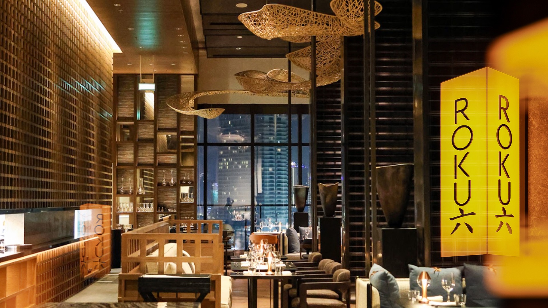 Bước chân vào Roku, thực khách sẽ bị thu hút bởi tác phẩm rồng bằng tre uốn lượn trên trần nhà. Lấy cảm hứng từ truyền thuyết Rồng giáng lâm kiến tạo nên vịnh Hạ Long, thiết kế này không chỉ là điểm nhấn thị giác mà còn là sợi dây kết nối văn hóa Việt - Nhật.