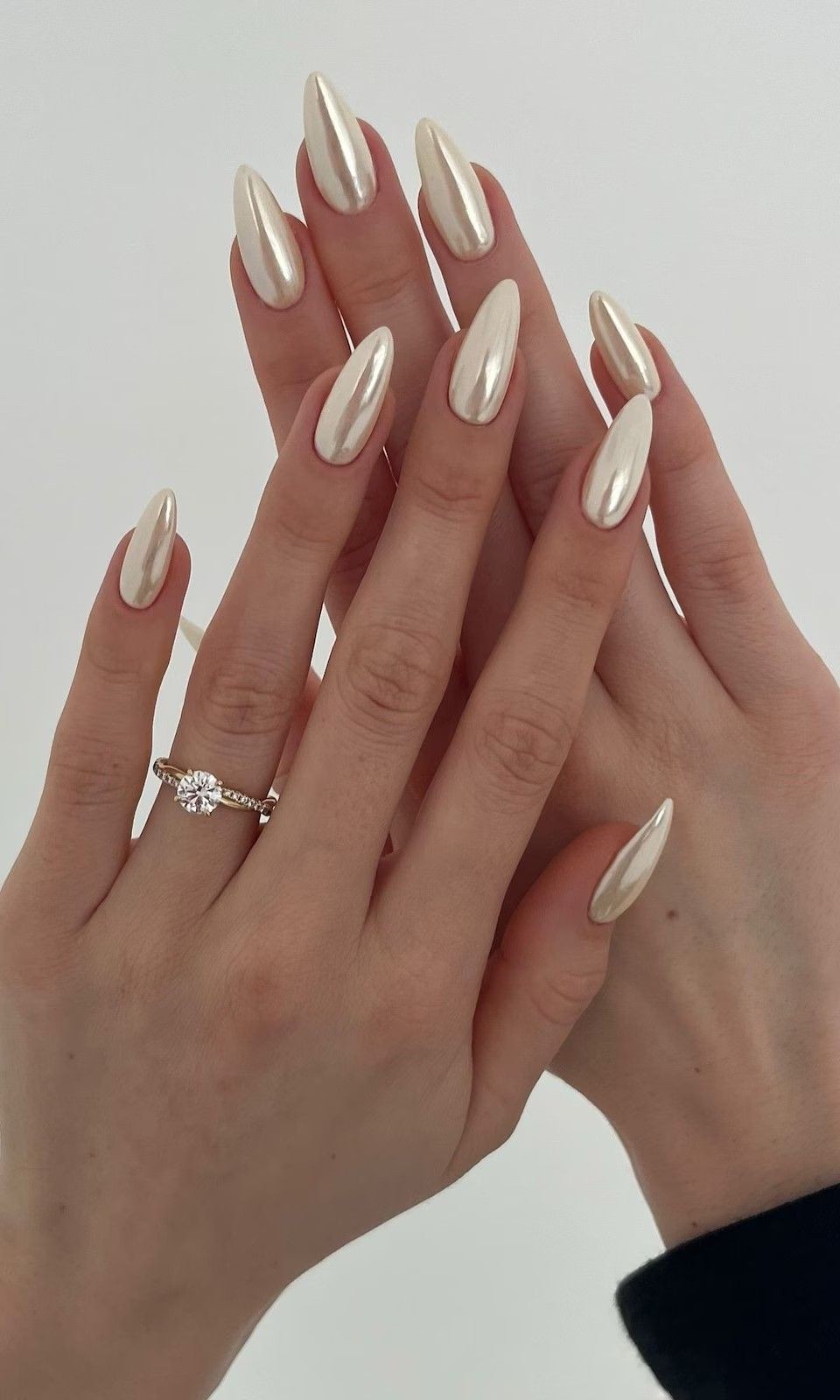 Mùa đông năm nay, dáng móng hạnh nhân trở thành “định dạng chuẩn” cho những ai mong muốn giữ vẻ thanh lịch nhưng vẫn có chút điểm nhấn. Các hiệu ứng đang thịnh hành như cat-eye nhiều tầng, chrome ánh ngọc trai hay phủ bóng metallic đều trở nên tinh xảo hơn khi đặt trên nền móng hạnh nhân. Chỉ cần điều chỉnh độ dài, dáng móng này có thể chuyển từ nhẹ nhàng sang sắc sảo, từ đơn giản sang ấn tượng mà vẫn giữ được sự nhã nhặn.
