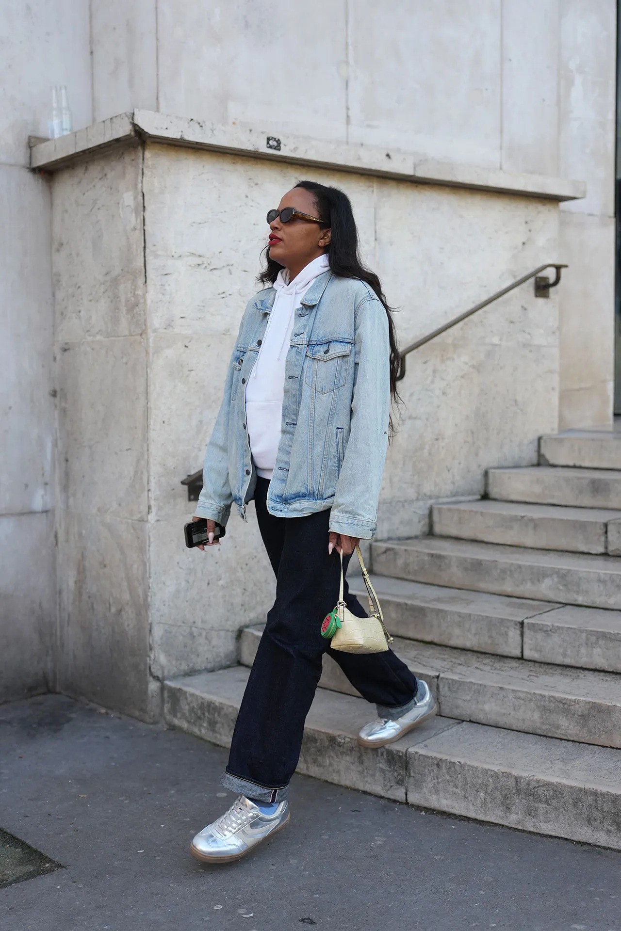 Điều khiến sneakers bạc ghi dấu chính là khả năng hoà vào nhiều phong cách. Với suit đơn sắc, chúng tạo sự đối lập thú vị giữa phom dáng cổ điển và hơi thở tương lai. Với quần jeans ống rộng và áo len tối màu, chúng phá vỡ cảm giác nặng nề của mùa lạnh, giúp tổng thể trở nên sáng hơn và trẻ hơn. Phiên bản satin bạc, với độ sáng mềm hơn kim loại, đặc biệt phù hợp không gian đô thị Việt Nam, nơi ánh sáng phản chiếu tạo ra một hiệu ứng lung linh vừa phải, rất hiện đại.