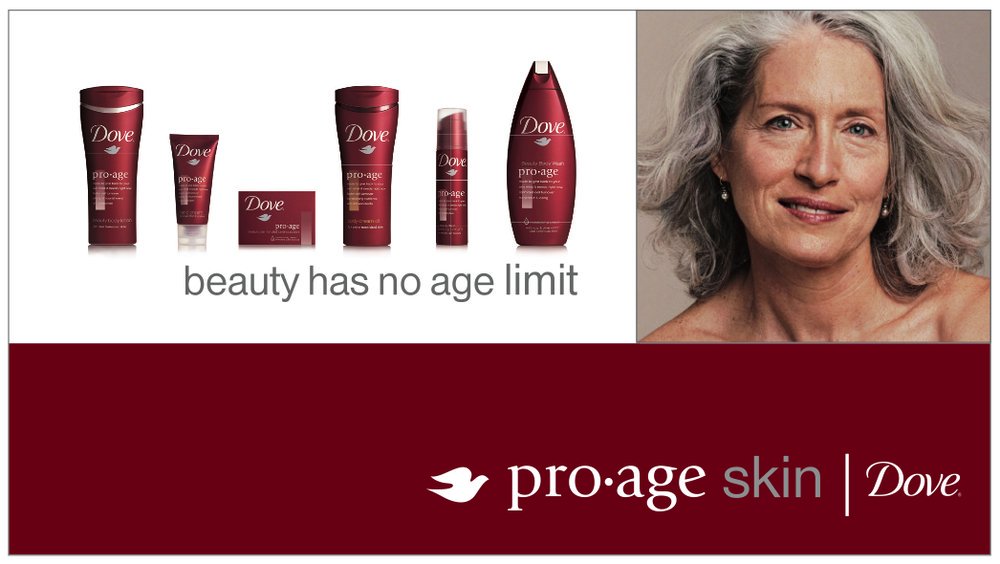 Điều này được xem là một sự đe dọa đối với các thương hiệu mỹ phẩm. Khao khát ngăn chặn hoặc làm chậm lại các hiệu ứng của quá trình lão hóa vẫn còn và thúc đẩy doanh số bán hàng. Một vài thương hiệu chăm sóc da như: Tula, Olay và Dove, đã cho ra đời các thuật ngữ như “không tuổi” và “anti-aging”, với mong muốn giúp người tiêu dùng cảm thấy tích cực hơn.