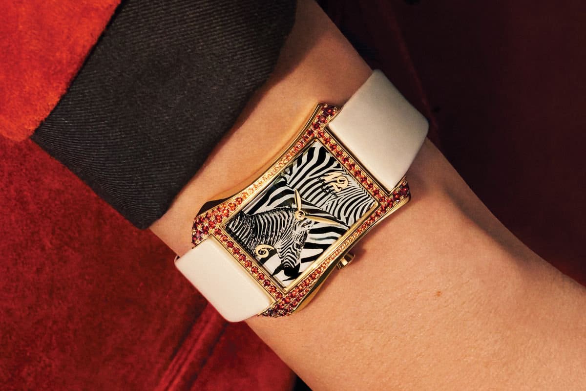 Họa tiết ngựa vằn sau đó được hoàn thiện bằng kỹ thuật mạ kim loại màu đen và phủ sơn trắng ở mặt số sapphire, tạo nên hiệu ứng thị giác ba chiều sống động như thể từng đường vân đang chuyển động dưới ánh sáng. Những đường vân ấy gợi cảm giác phóng khoáng nhưng vẫn giữ được nét mềm mại như chính tinh thần người phụ nữ hiện đại mà thương hiệu hướng đến: bản lĩnh, tự do nhưng vẫn đầy duyên dáng.