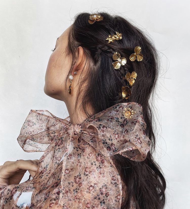 Kẹp hoa kim loại rải rác: nghệ thuật hóa mái tóc tết