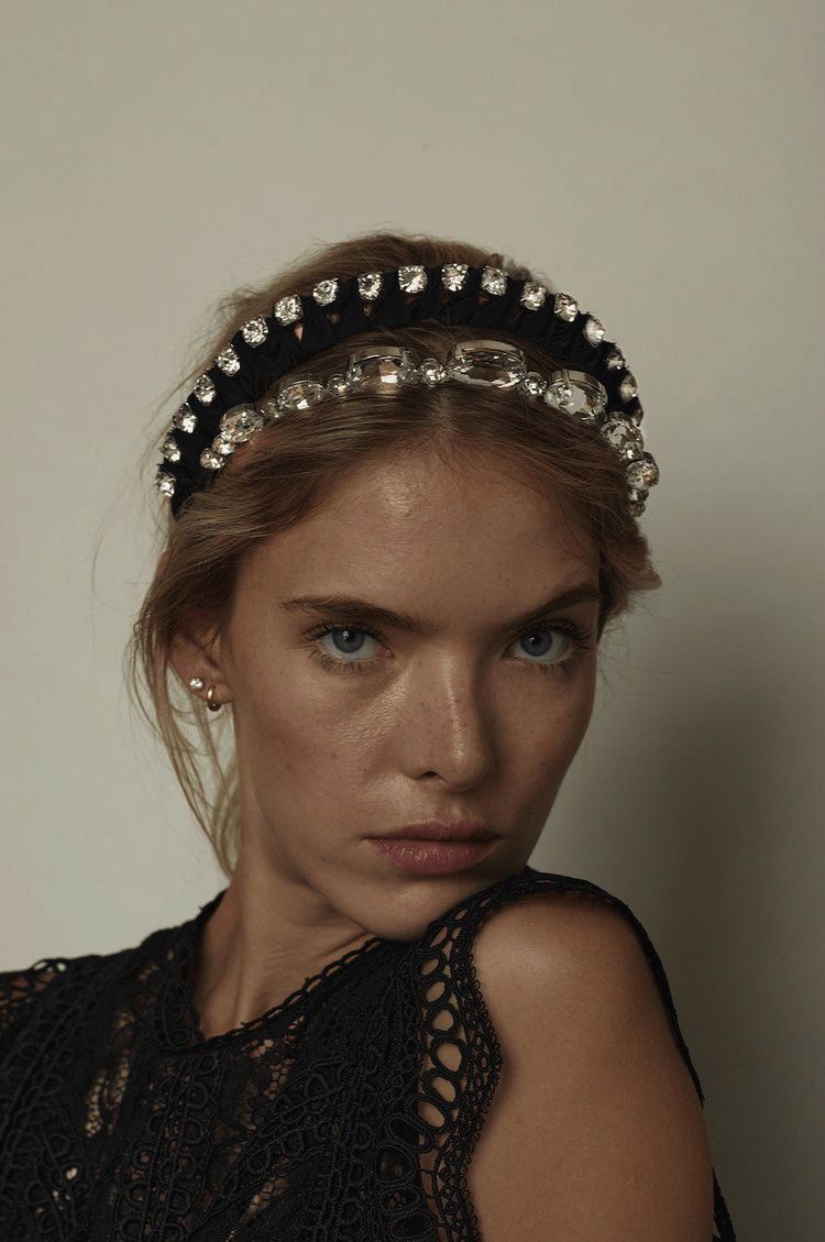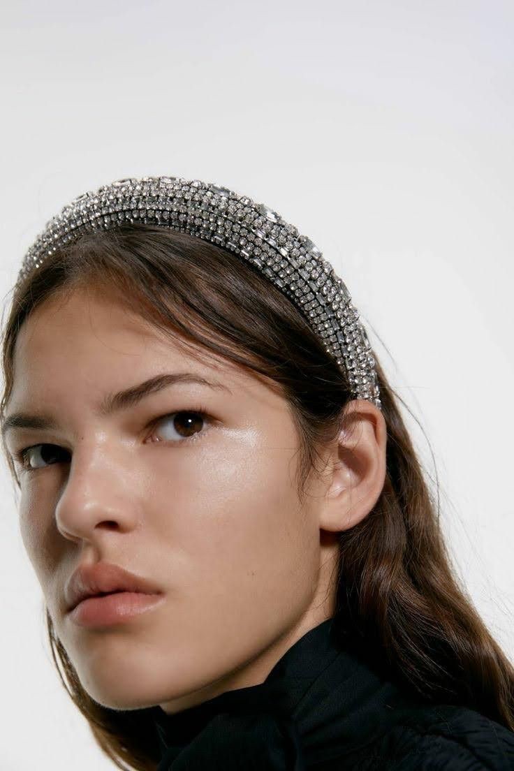 Băng đô nhung phồng hoặc đính đá năm nay không mang tinh thần “bridal” mà hướng tới nét thanh lịch trưởng thành. Chúng kết hợp hoàn hảo với tóc rẽ ngôi giữa sleek, tóc bob ép thẳng hoặc tóc dài được sấy phồng nhẹ để lộ phần xương gò má. Nhung phồng tạo độ nâng cho phần chân tóc, giúp khuôn mặt sáng và gọn gàng, trong khi băng dô đính đá lại bắt sáng từng chuyển động, biến mái tóc thành bề mặt ánh sáng tinh tế. Trong bối cảnh tiệc tối cuối năm, chỉ cần một chiếc băng đô đính đá là đủ thay thế một đôi khuyên tai cầu kỳ – tối giản nhưng đủ sức tạo ấn tượng.