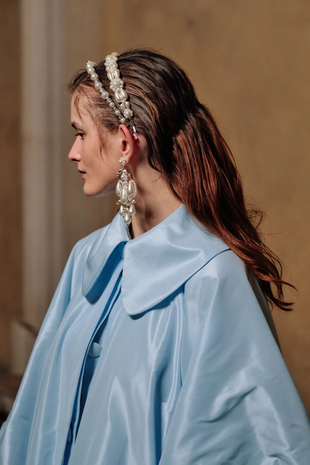 Không khó để nhận ra gam màu của mùa đông năm nay mang đậm tinh thần Ralph Lauren: xanh navy, đỏ nhung, xanh lá đậm, tartan tối màu. Khi đặt những bảng màu đó cạnh chất liệu tóc, từ tóc xoăn tự nhiên, tóc thẳng bóng đến tóc tết, phụ kiện tóc trở thành lớp chuyển tiếp mềm mại giữa sự thực dụng và lãng mạn. Chính vì vậy, nơ nhung, băng đô velvet phồng, kẹp hoa kim loại, cuff pha lê hay scrunchie oversized đều được “tái sinh” mạnh mẽ trên sàn thời trang, thảm đỏ danh vọng và cả street style toàn cầu.