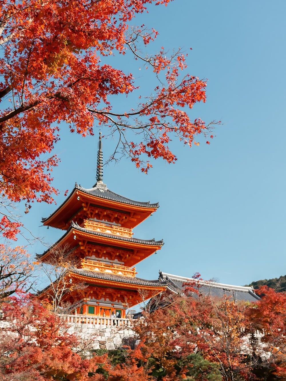 Tọa lạc trên sườn núi Otowayama ở phía đông Kyoto, Kiyomizu-dera (chùa Thanh Thủy) vừa là di sản văn hóa thế giới, đồng thời là một trong những địa điểm ngắm lá đỏ đẹp nhất Nhật Bản. Dù được xây dựng từ thế kỷ thứ VIII, ngôi chùa vẫn lưu giữ trọn vẹn kiến trúc cổ kính cùng vẻ đẹp uy nghi ban đầu.