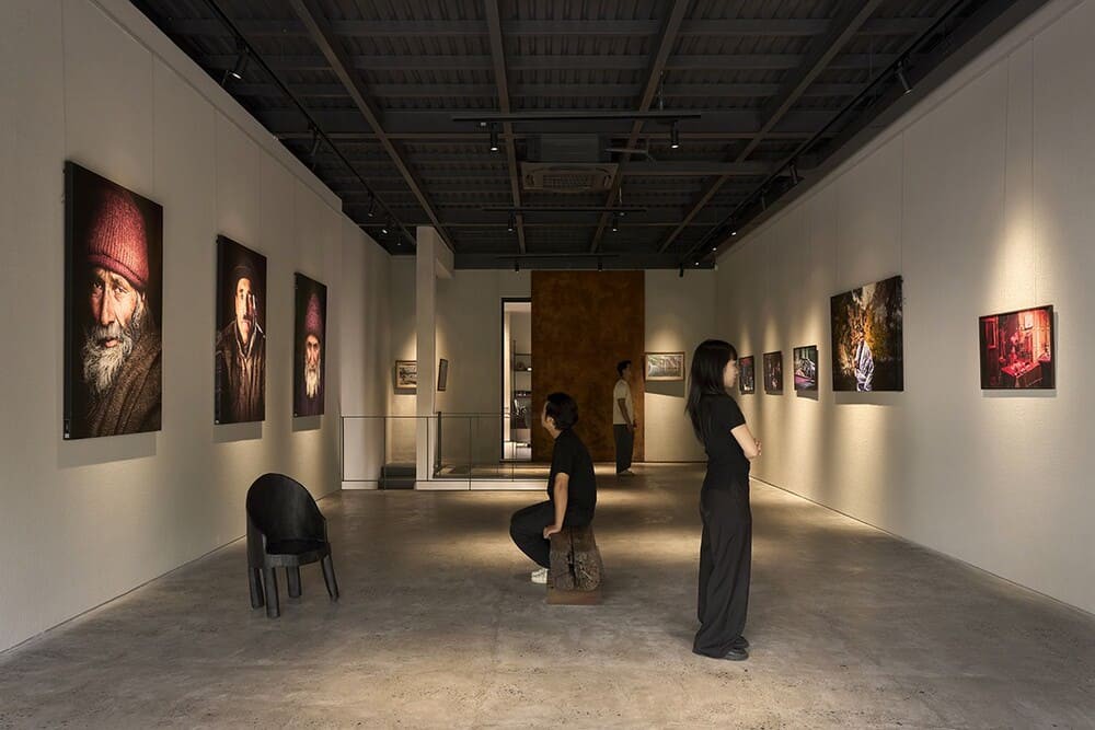 Tông xám chủ đạo làm nổi bật từng tác phẩm trên tường. Ánh sáng chuyên dụng cùng cửa sổ lớn mở ra mảng xanh bên ngoài giúp người xem cảm nhận nghệ thuật một cách tự nhiên và thư thái.