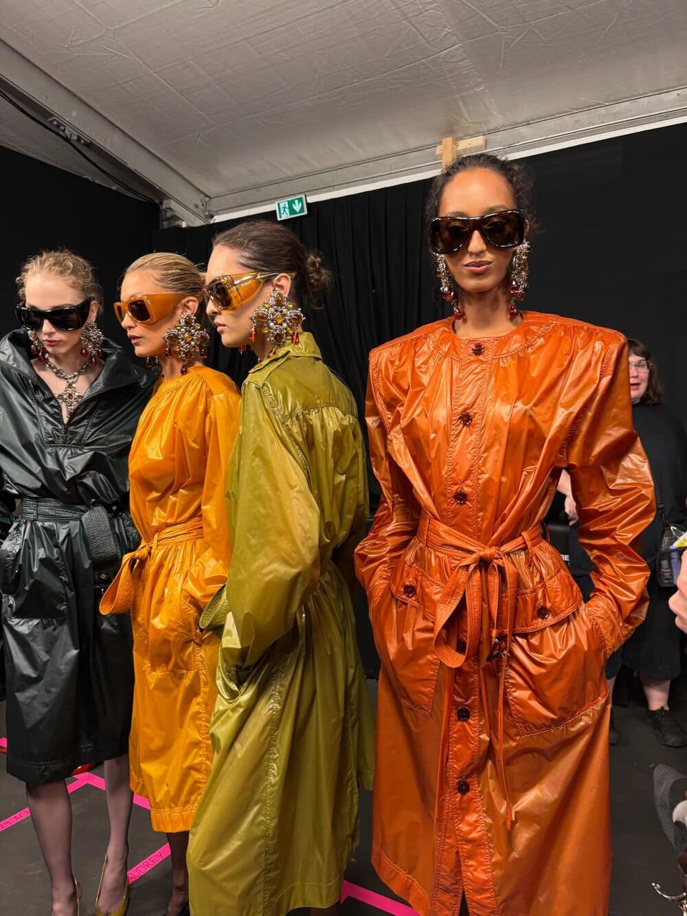 Maximilian Davis mang đến cho Ferragamo SS26 một khái niệm tailoring rất riêng: Suit lấy cảm hứng từ những năm 1920 – thời kỳ jazz và tự do. Các mẫu vest vải mỏng, cổ sâu, đôi khi mặc trần hoặc phối cùng sơ mi satin, tạo nên sự hòa quyện giữa nam tính và nữ tính. Đó là “speakeasy suiting” – vừa cổ điển vừa gợi cảm.